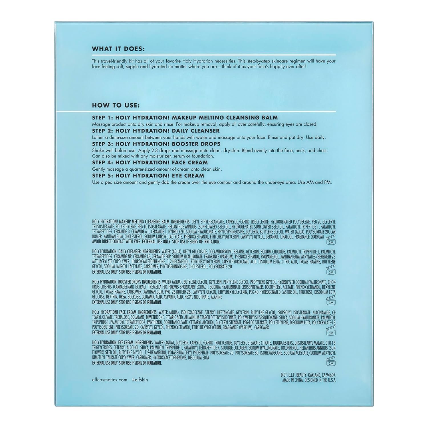 What sets this product apart is its science-backed formulas, each infused with hyaluronic acid, peptides, and ceramides. From removing makeup to deeply moisturizing and nourishing the delicate eye area, the e.l.f. SKIN Holy Hydration! Hydrated Ever After Skincare Mini Kit aims to keep your skin barrier happy all day long.