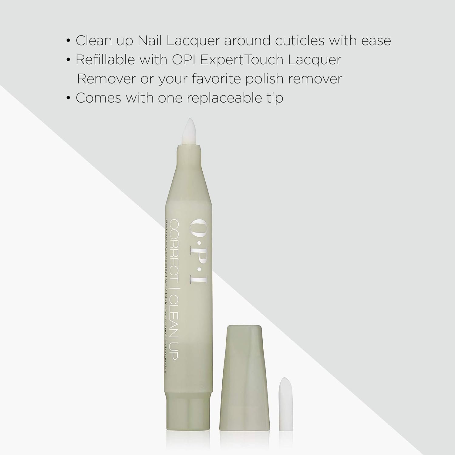 The OPI Correct Clean Up Refillable Nail Polish Remover Corrector Pen offers a gentle, non-drying formula designed to erase polish mistakes with precision. This compact pen includes a replacement tip for extended use, making it a must-have for flawless at-home manicures. Trust the renowned OPI brand for an easy, mess-free nail correction solution that keeps your nails looking salon-perfect. Enhance your nail care routine with this essential tool today!